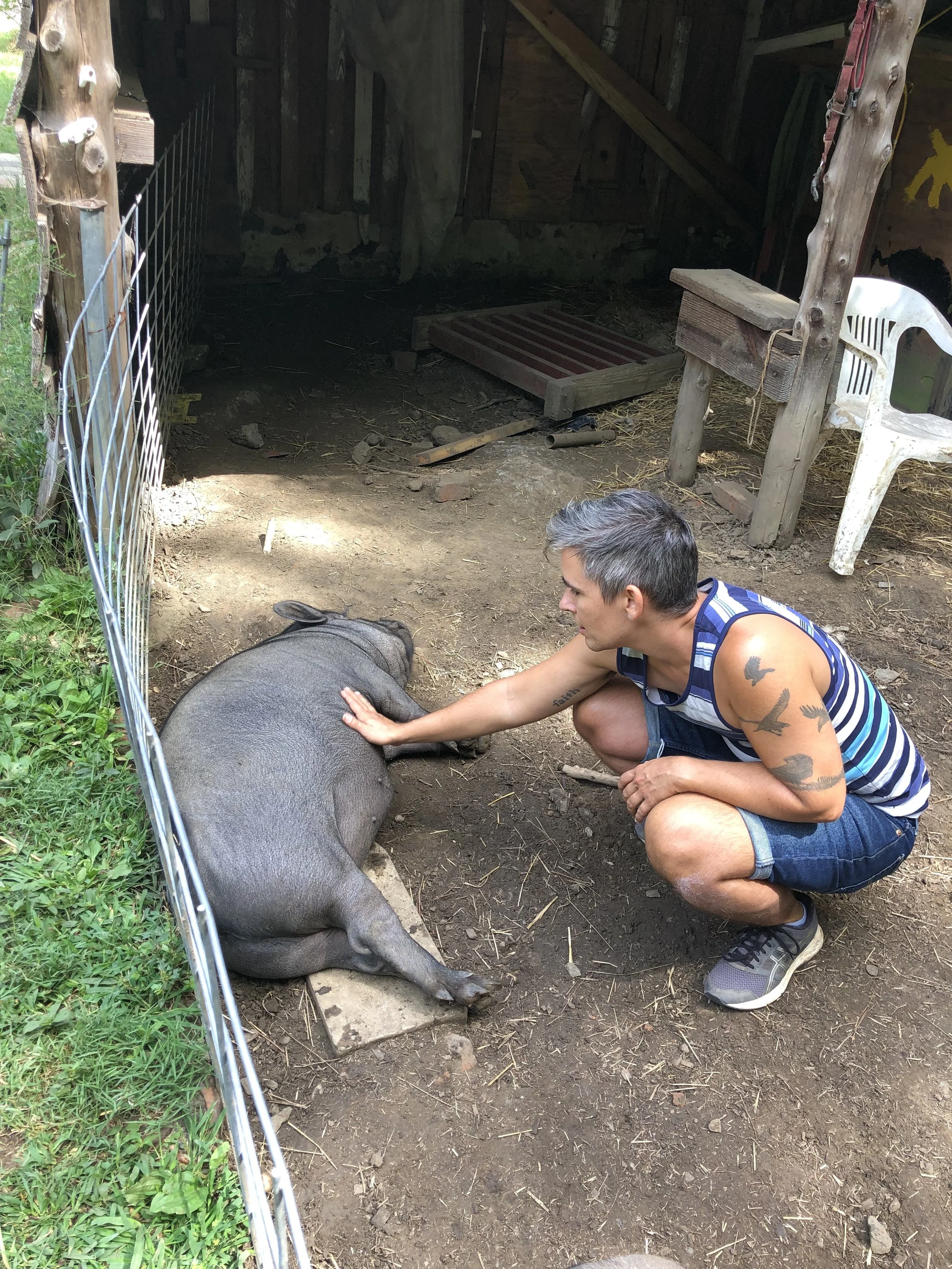 I love talking to people and even more than that I love listening, learning, and unlearning. I am a midwestern southerner/southern midwesterner living in Durham, white and transgender, and certified open-water SCUBA diver and member of the emerging Searealists collective. I am also a proud queer co-caretaker of 11 chickens, three potbellied pigs, two Dorper sheep, and a dog named Turtle. We can talk about abolition journalism or we can just talk about pigs; you tell me.