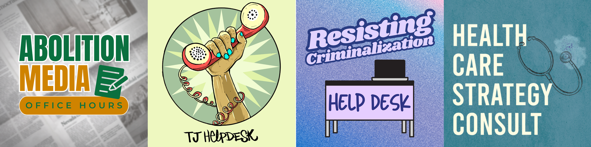 Resisting Criminalization Help Desk — for organizers and groups looking for thought partnership and one-on-one consultation and support around organizing, advocacy, budget, policy, legislative or litigation strategies to interrupt criminalization, policing, and state violence.
