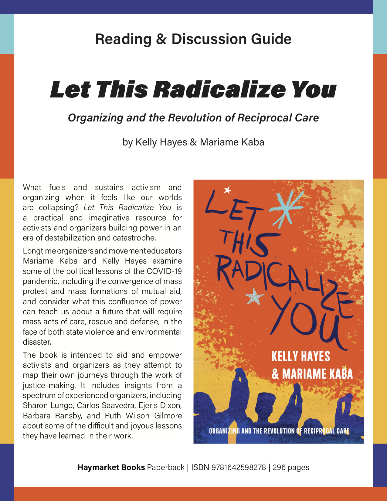This is a reading and discussion guide for Let This Radicalize You by Kelly Hayes and Mariame Kaba, a practical and imaginative resource for activists and organizers building power in an era of destabilization and catastrophe.